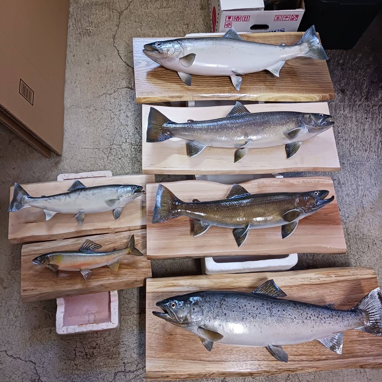 只今作業中~ブラウン、ギンケアマゴ、イワナでき上がりました。