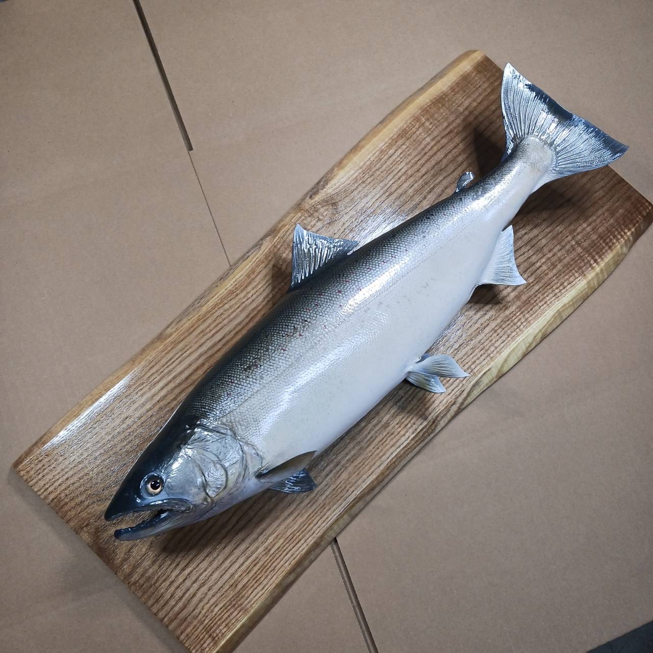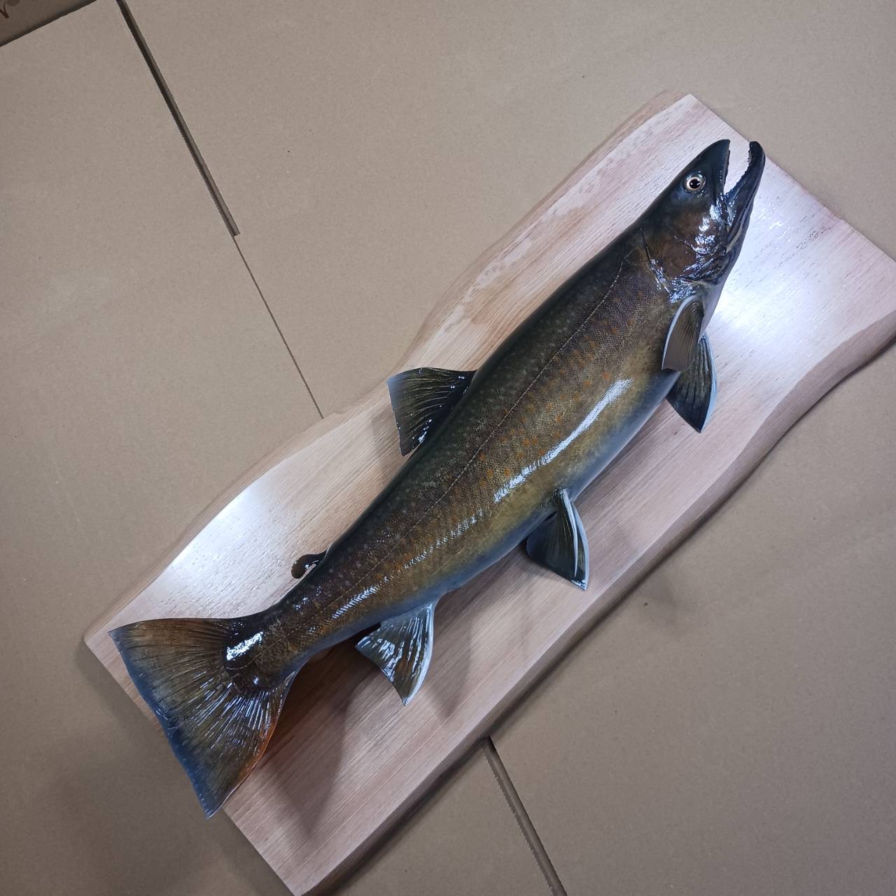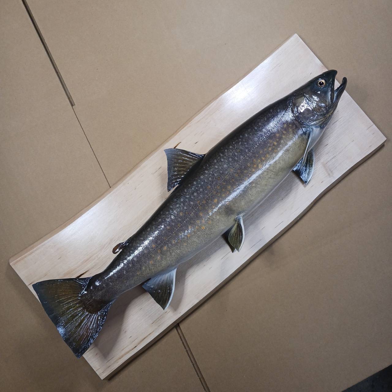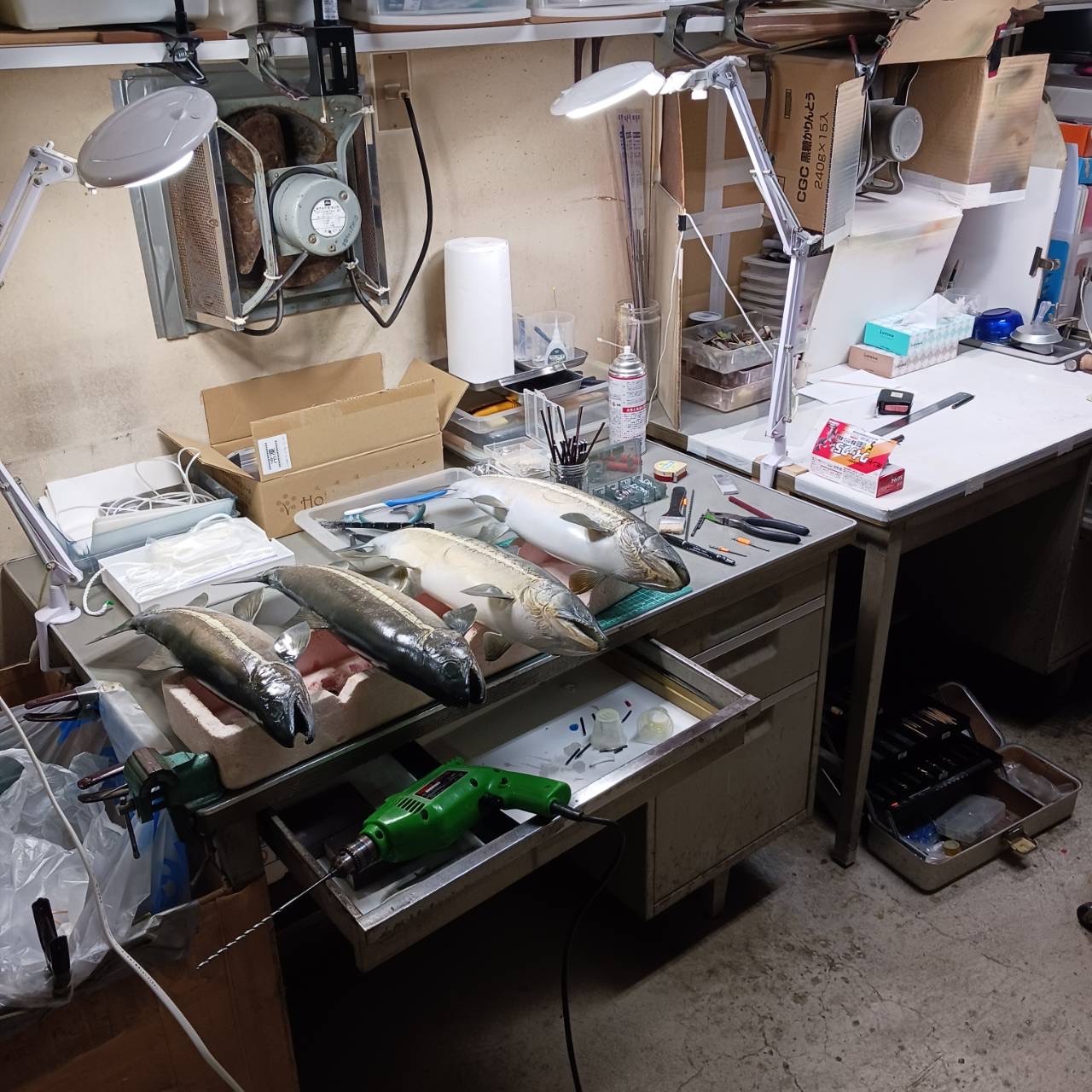 只今作業中~二刀流。しばらくは剥製作業になります。芦ノ湖ブラウントラウト70cm。